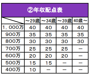 3)年收:需要根据年龄与年收来算分10分-40分不等,具体参考下表