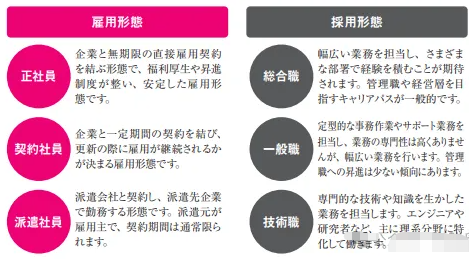 日本企业的采用形态分为:「综合职」、「一般职」和「技术职」;