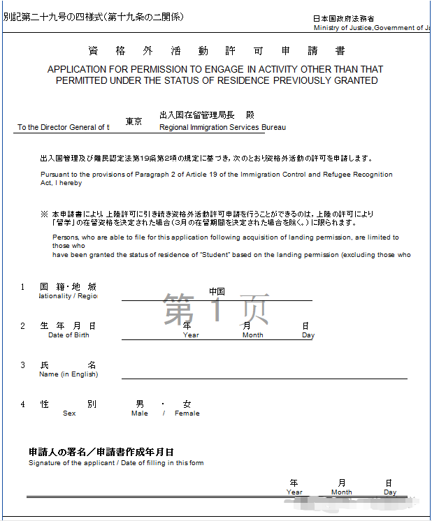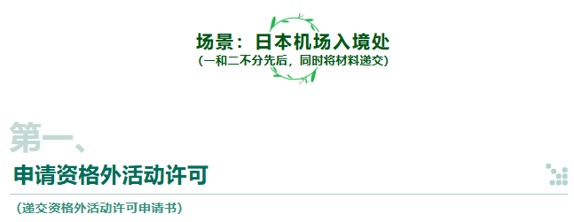 最省事方式:在日本机场入境审查时,直接递交给审查官资格外活动许可申请书(提前打印写好),当场签发打工资格(在留卡后面下面一行小字)