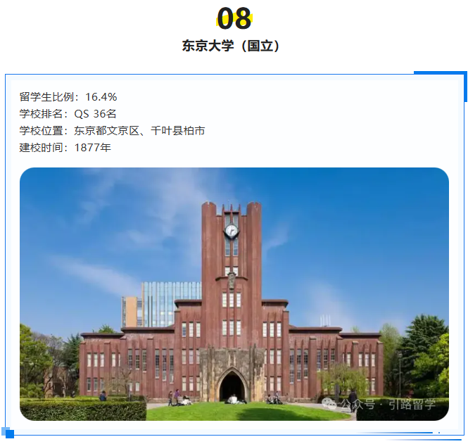 作为日本第一所国立综合性大学,也是日本最高学府,近几年留学生数激增的原因主要是在学部阶段开设了PEAK项目、大学院阶段理工学科也在积极发展英语授课项目,从而吸引了大量外国人留学生。