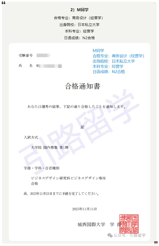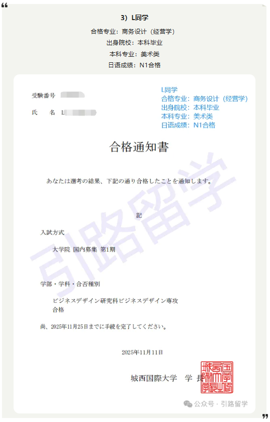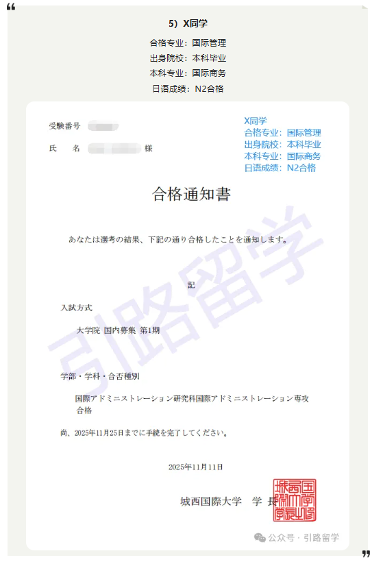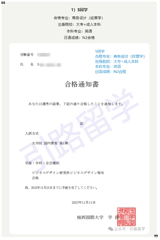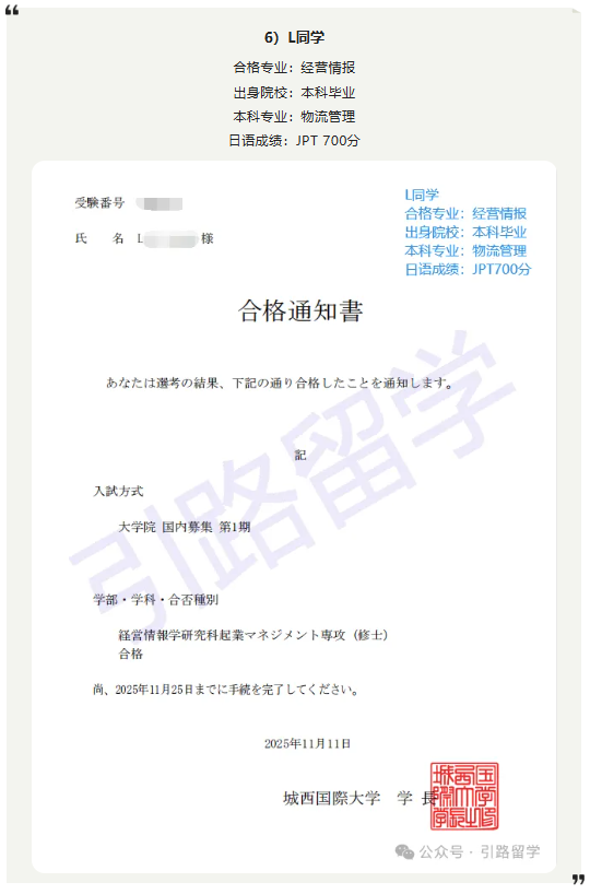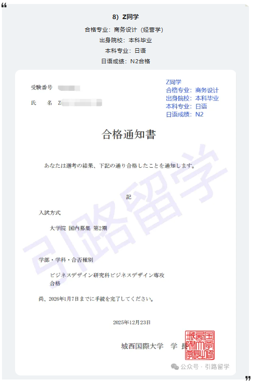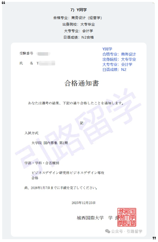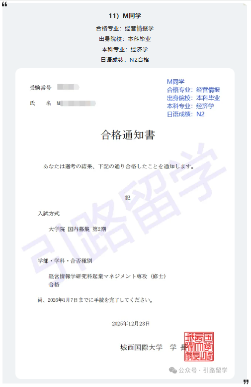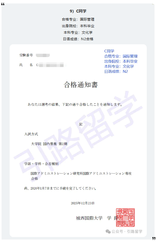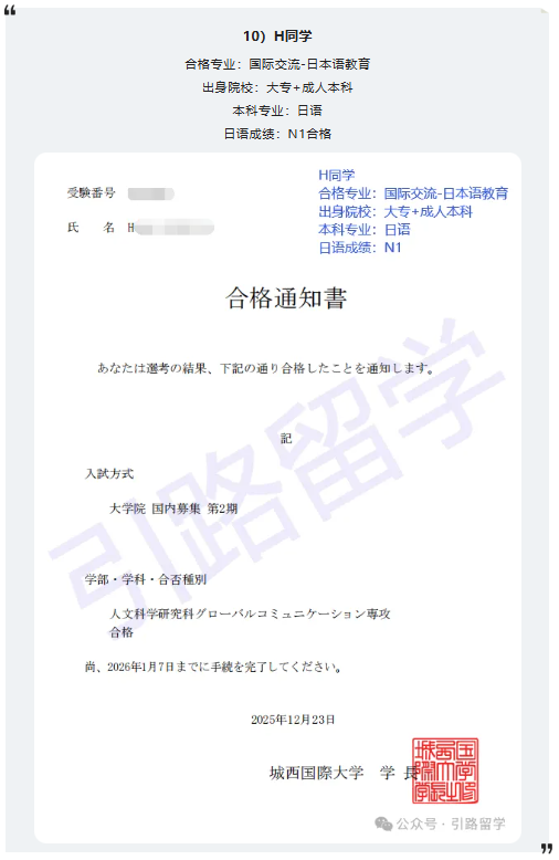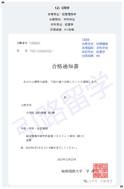 恭喜12位同学合格城西国际大学26年4月入学的修士,还可报名!!