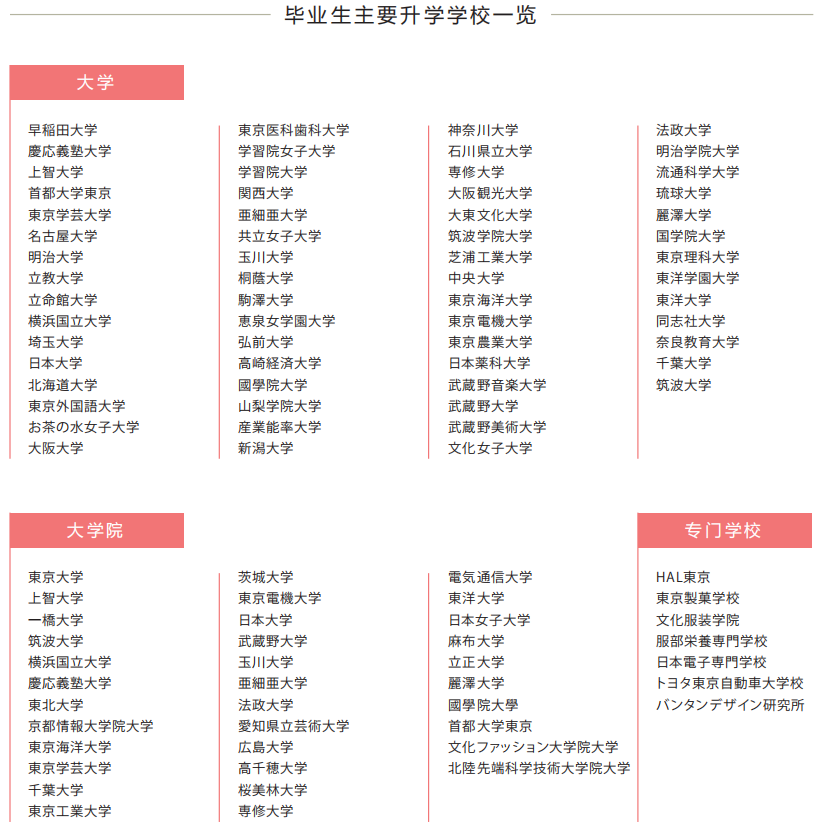 学生定员:池袋1000名(升学校)、成增400名(就职)、练马校120、光丘校100