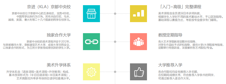 京都中央校毗邻京进教育集团总部,充分利用集团优势,以强大的师资为学生提供择校、报考、应试等全方位的升学指导。由资深讲师执教日本留学考试(EJU)强化课程,为学生提供难点突破个别辅导。