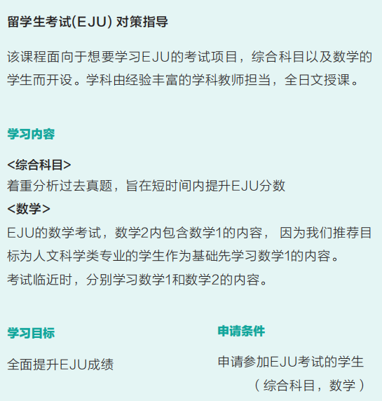 针对升学目的不同为学生提供多元化的升学课程,同时设计了短期实用日语及文化体验课程。设立四期制,一年中设有1月,4月,7月.10月的四期入学制度,方便入学。