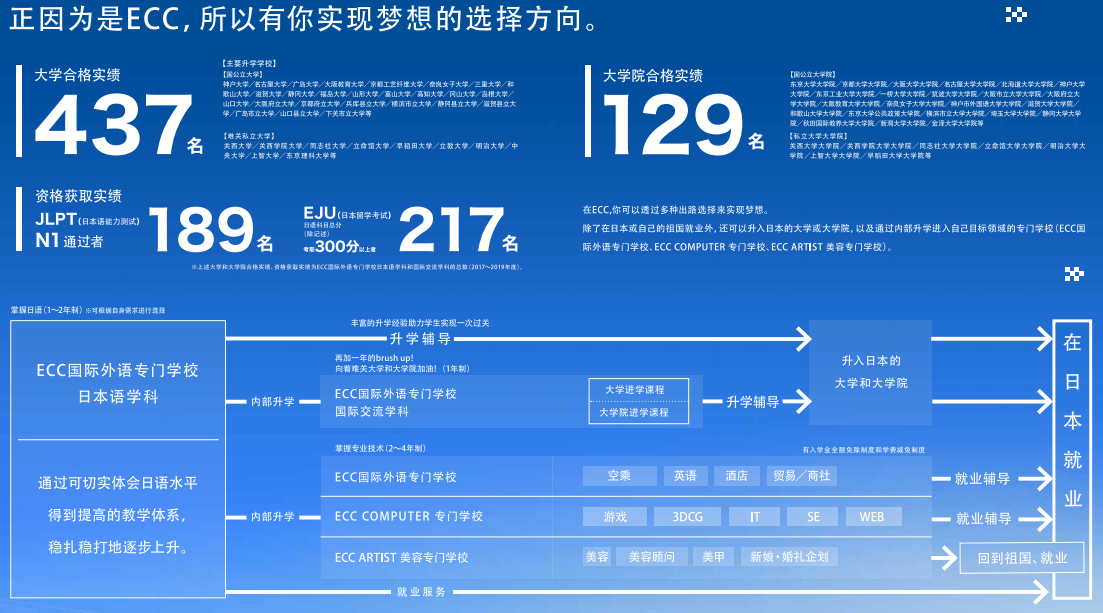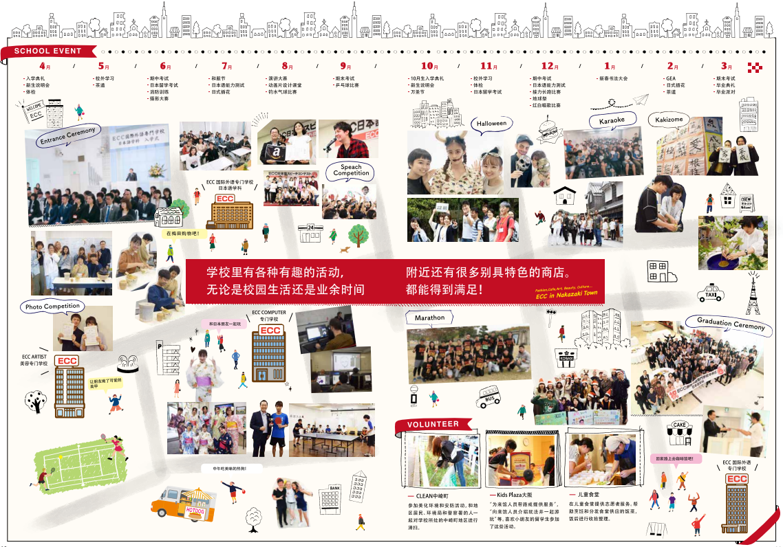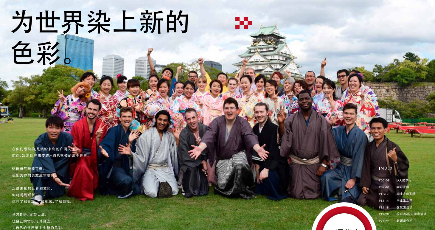 ECC 拥有来自全球34个国家的约1000名留学生和约2800名的日本学生是关西地区数一数二的综合学园。