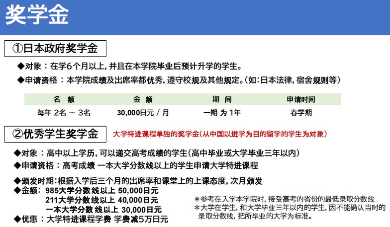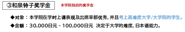 推荐成绩・出席率优异者申请。通过申请者,每个月有3万日元的奖学金,为期一年。