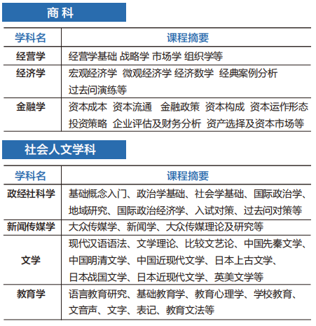 文科基础课程(日语+文综+数学)+EJU留考对策课程(日语+文综/+数学)+托福/托业预备课程/高分对策课程+志愿学校校内考特训课程+小论文/面试辅导课程 |